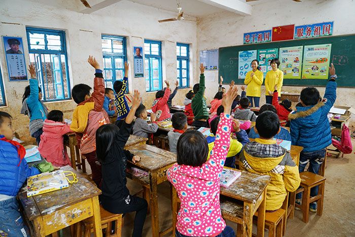 志愿者們來到了豐堯村豐堯小學(xué)進(jìn)行慰問和聯(lián)誼活動(dòng)。豐堯小學(xué)有五個(gè)年級(jí),但一共只有不到40名學(xué)生。這里的孩子活潑好動(dòng),精力充沛,非常愛笑。